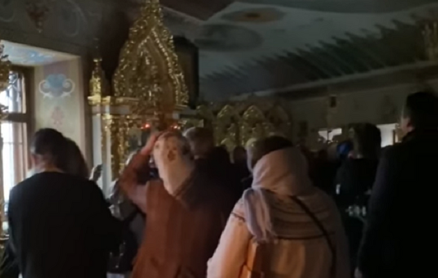Видео, снятое якобы в храме Всех святых печерских в Лавре, опубликовал священник Православной церкви Украины Михаил Омелян. По его словам, ролик он получил от выпускника Киевской православной богословской академии.