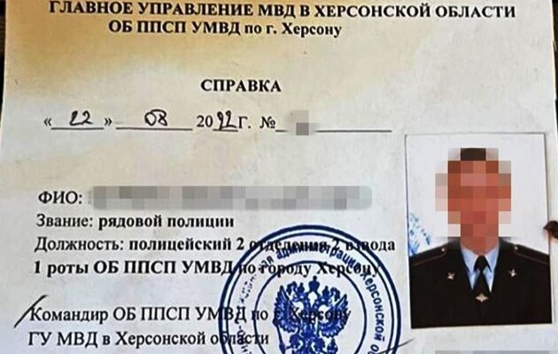 Житель Херсона во время оккупации города российскими захватчиками предложил им свои услуги. Ему дали «должность» в созданном агрессором "управлении МВД по Херсону.