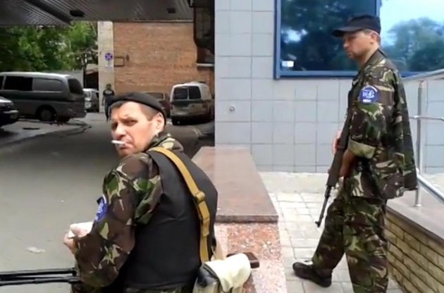 Здание на улице Артема, 68, со всех сторон окружено автоматчиками. Один из них, в ответ на вопрос издания "Остров", зачем они здесь находятся, заявил, что боевики "блокируют управление Донецкой дороги".