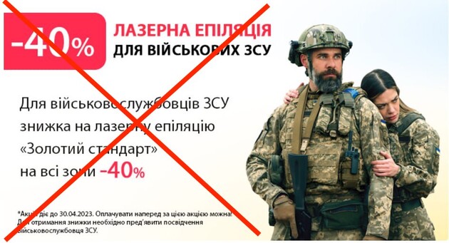 "Скидка на эпиляцию для ВСУ", "Редиска "Азовсталь" и другая подобная реклама может исчезнуть в Украине. Несколько народных депутатов Украины подали в Верховную раду законопроект №9128 "О внесении изменений в некоторые законы Украины по ограничению использования патриотической тематики при регистрации торговых марок и в рекламе", говорится на сайте ВР.
