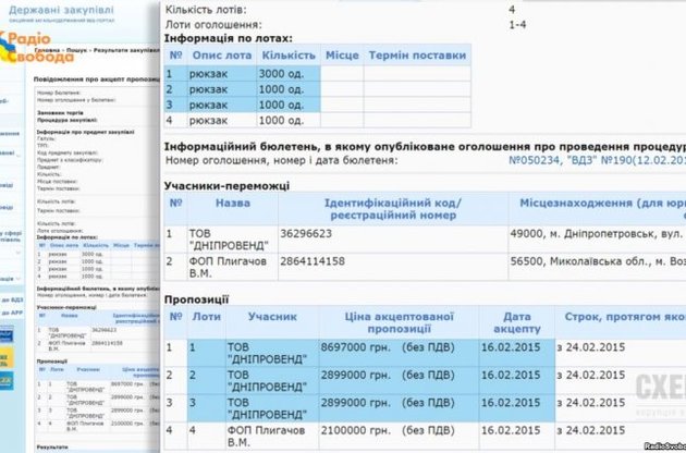 Как удалось выяснить журналистам, одна из фирм, которая выиграла тендер, - малоизвестная компания "Днипровенд" в Днепропетровске - крупнейший подрядчик, зарегистрированный на улице Столетова, 21к, имеет отгрузить 5000 единиц товара.