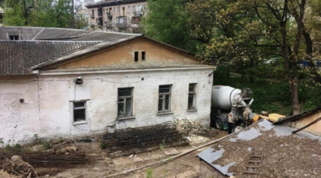 Местные жители и активисты, которые борются за сохранение исторического архитектурного наследия Киева, длительное время противостояли попыткам сноса усадьбы. Зеленым строительным сукном здание обнесли еще в начале мая.