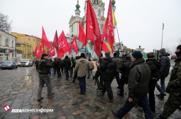В центре Киева несколько сотен активистов партии "УДАР" провели шествие в поддержку всеукраинской предупредительной забастовки.