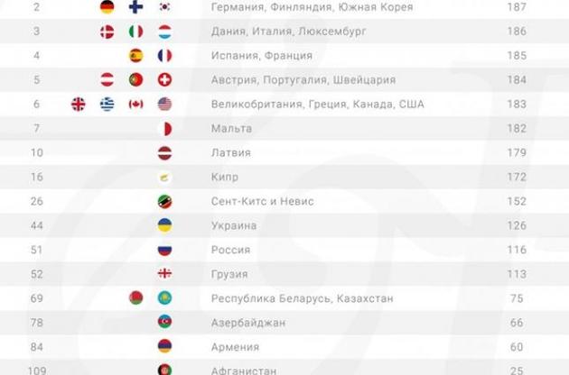 Тройку лидеров в последнем рейтинге замыкают Дания, Италия и Люксембург (186 стран).
