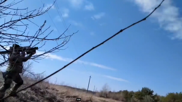 На видео зафиксирован боевой пуск с ПЗРК, в результате которого был сбит истребитель-бомбардировщик Су-34 на высоте двух тысяч метров, который взорвался в воздухе.