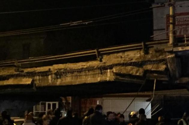 В Киеве обрушилась часть Шулявского моста, зацепив одну машину, которая стояла под мостом.