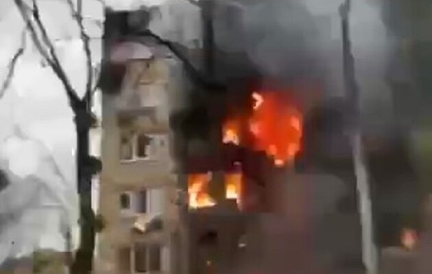 Заместитель главы офиса президента Кирилл Тимошенко опубликовал видео пожара в одном из домов.