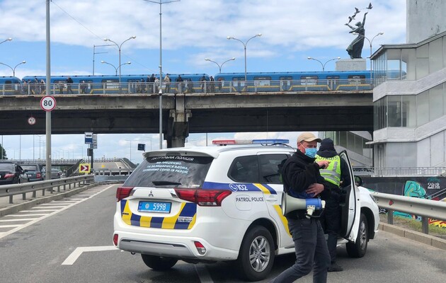 В Киеве в среду, 9 июня, остановили движение транспорта по мосту Метро. Предварительная причина - сообщение о минировании.