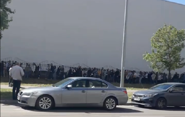 Утром 5 июня у здания Международного выставочного центра в Киеве, где находится единственный в городе центр вакцинации от коронавируса, выстроились огромные очереди. В толпе находилось около 700-1000 человек, социальная дистанция не соблюдалась, маски были не у всех.