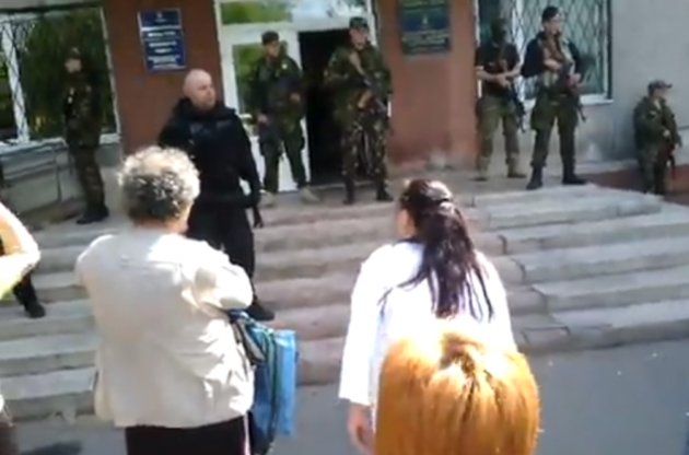На входе в горотдел выставлена охрана из шести вооруженных бойцов. Городской отдел милиции блокирован бронированными автомобилями Приватбанка, входы и выходы заблокированы пулеметными точками.