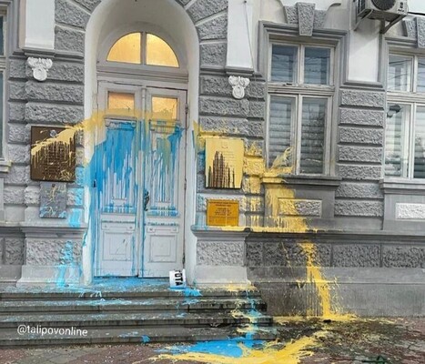 В оккупированном Крыму партизаны облили голубой и желтой краской здание оккупационной администрации города Евпатории, сообщил глава Меджлиса крымскотатарского народа Рефат Чубаров.