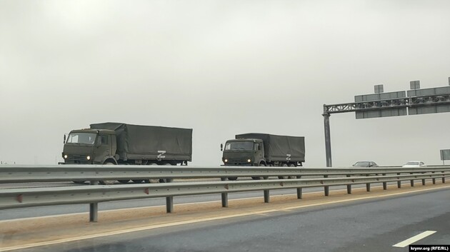 "Сегодня возобновилось движение грузовиков из БК из России на направление Мангуш/Бердянск. По меньшей мере, 14 грузовиков в день с отметками "V" в квадрате", - пишет украинский чиновник.