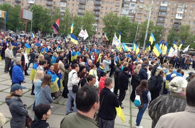 В Мариуполе на площади Ленина собралось несколько тысяч мариупольцев, которые выступают против вывода украинских военных из Широкино, сообщает 0629.com.