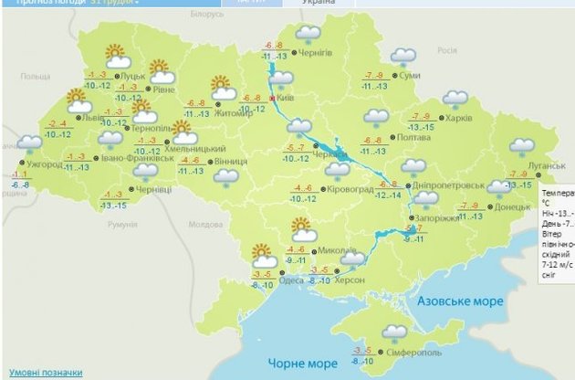 "31 декабря на дорогах столицы ожидается гололедица, небольшой снег, ветер северо-восточный, 5-10 м/сек. Температура ночью – 10-12° мороза, днем – 6-8° мороза", - сообщает пресс-служба Киевской городской государственной администрации со ссылкой на Украинский гидрометцентр.