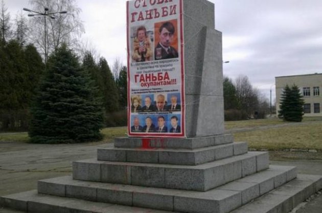 В Хмельницкой области жители райцентра Шепетовка превратили постамент снесенного в ночь на 7 февраля памятника Ленину в позорный столб Владимира Путина, Валентины Матвиенко и российских сенаторов - уроженцев Украины, позволивших Путину ввести войска на территорию своей родины: львовянина Юрия Бирюкова, Анатолия Бондарука и Олега Ткача из Казатина на Виннитчине, Владимира Кулакова из Белой Церкви, дончанина Николая Рыжкова, Николая Максюты с Кировоградщины, мариупольца Николая Саблина.