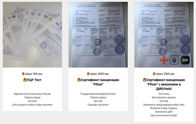 СOVID-сертификаты у фигуранта стоили 1500 гривен, а справка — 500 гривен.