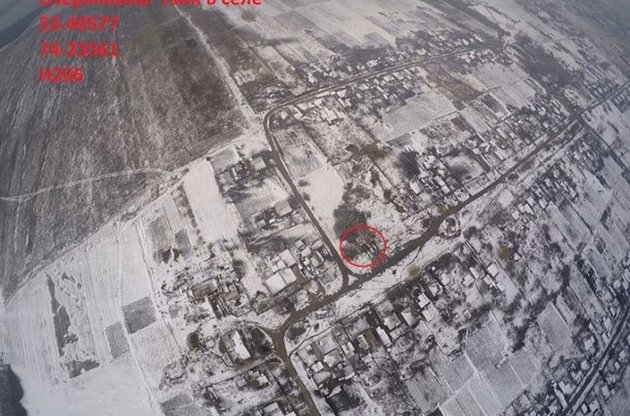 На восточной окраине Озеряновке обнаружен танк боевиков: N48°16'29,33"E37°58'08,03"; Х=5349577, Y=7423561.