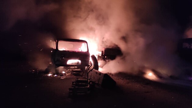 Однако из-за вражеского обстрела уничтожены три служебных автомобиля, поврежден ангар и еще пять единиц техники.
