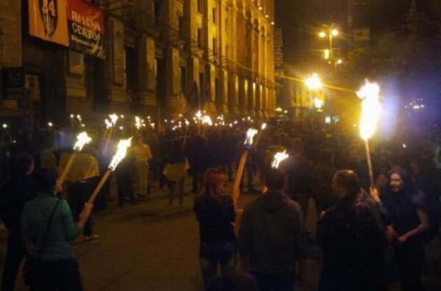 Напомним, 29 апреля вечером несколько десятков неизвестных в масках устроили шествие с факелами со стороны Бессарабки в направлении Майдана. Акцию неизвестные якобы посвятили памяти героев Небесной сотни. При попытке пройти через баррикады якобы в направлении улицы Институтской между участниками шествия и активистами самообороны Майдана возник конфликт.