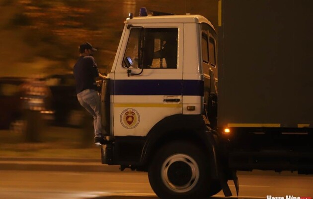 Появилось видео наезда автозака на человека во время протестов в Минске. О состоянии пострадавшего пока не сообщается, передает новостной портал Tut.by.