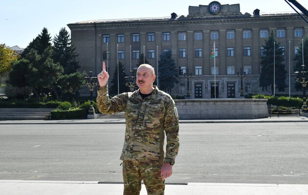 Президент Азербайджана Ильхам Алиев в ноябре провел военный парад на центральной площади столицы у здания парламента. Сеть облетело видео, на котором он топчется по флагу армянских карабахских сепаратистов.