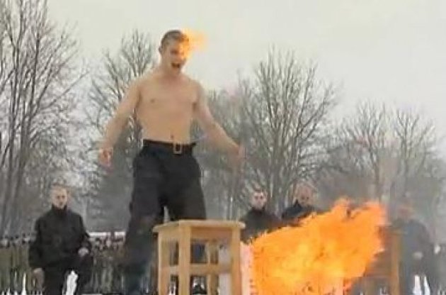 Белорусские спецназовцы отметили Масленицу, разбивая головами горящие кирпичи