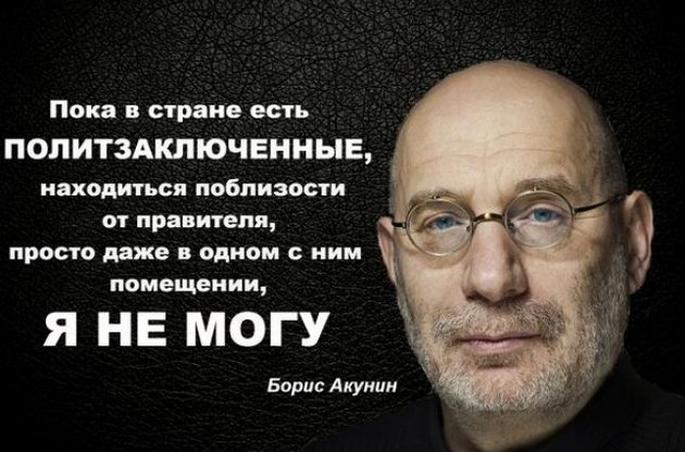 "Пока в стране есть политзаключенные, находиться поблизости от правителя, просто даже в одном с ним помещении, я не могу. Это означало бы, что я считаю для себя возможным внимать речам о прекрасном, исходящим от человека, который держит в тюрьме людей за их политические убеждения... Я с удовольствием пообщаюсь с Путиным на темы литературы и чтения после того, как всех "политических" выпустят", – добавил он, имея в виду дело Ходорковского, Pussy Riot и фигуранта "болотного дела" Сергея Кривова