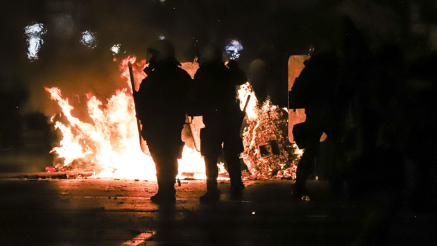Позже участники перешли к активным действиям. Они бросали в полицию камни, так как она несколько раз применила против них водомет. В результате действий митингующих было разбито окно полицейской машины. На месте вспыхнули пожары, в том числе и на полицейском участке.