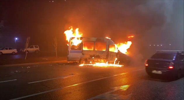 Массовые газовые протесты в Казахстане превратились в настоящее поле битвы. Протестующие громят и поджигают полицейские машины. Силовики формируют довольно многочисленные усиленные щитами отряды и наступают на закидывающую их камнями толпу.