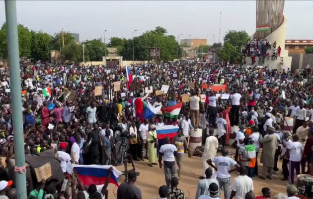 30 июля в столице Нигера Ниамеи, где недавно произошел государственный переворот, прошла демонстрация сторонников военной хунты. Они пришли в здание посольства Франции, которое имеет традиционное влияние в регионе, и пытались попасть внутрь. Люди в толпе держали не только флаги Нигера, но и флаги Российской Федерации.