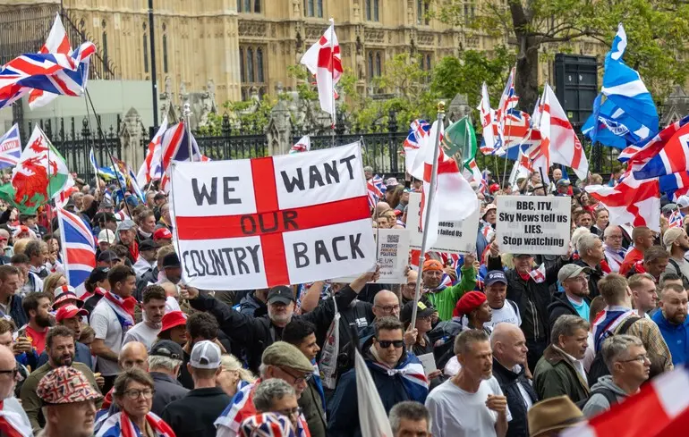 Марш стал кульминацией напряженного лета в Великобритании, в течение которого проходили акции возле отелей, где размещают мигрантов.