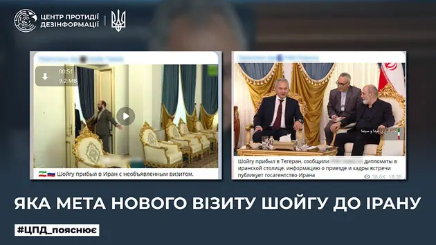 Секретарь совета безопасности РФ Сергей Шойгу во вторник, 17 сентября, вторично через два месяца совершил визит в Иран. Во время визита он, вероятно, будет договариваться о поставках новой оружейной партии, сообщает Центр противодействия дезинформации.