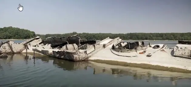 В водах Дуная на территории Сербии и Венгрии из-за понижения уровня воды в реке обнажились остовы военных кораблей, затопленных во время Второй мировой войны.
