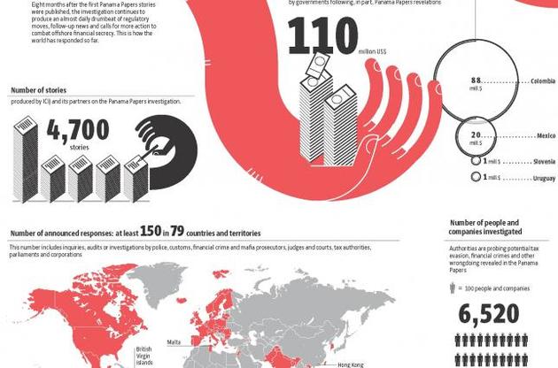 Кроме того, публикация этого досье позволила вернуть или арестовать около 110 млн долларов коррупционных средств - почти 90 млн долларов из них были арестованы в Колумбии, 20 млн долларов - в Мексике.