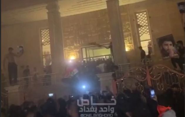 В серии видео, опубликованных в группе Telegram One Baghdad, показано, как люди собираются у посольства около часа ночи в четверг (22:00 по Гринвичу в среду), скандируют лозунги в поддержку Садра и штурмуют комплекс посольства примерно через час.