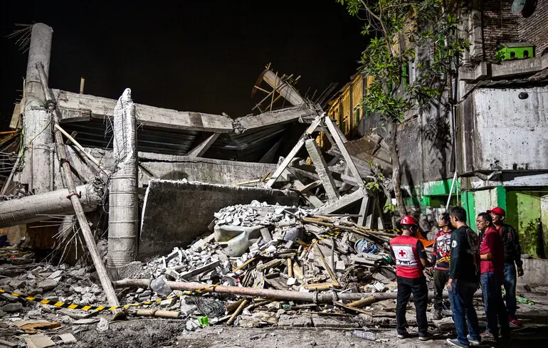 Несколько сотен спасателей, полиция и военные в течение ночи расчищали руины. Извлекли восьмерых людей живыми и подавали воду и кислород тем, кто еще находился под завалами.
