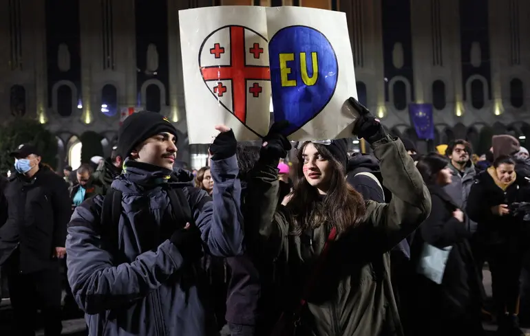 Решение грузинского правительства отказаться от переговоров о вступлении Грузии в ЕС вывело на улицы десятки тысяч человек. Протесты становятся все более масштабными и ожесточенными.   Но удастся ли грузинам отстоять свое будущее? Читайте в статье Владимира Кравченко "Вернётся ли Грузия в российский барак".