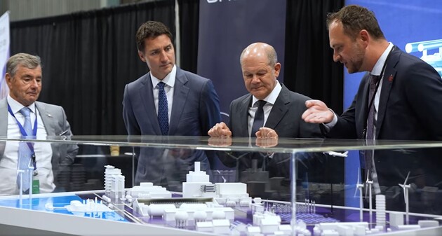 Сначала в Канаду прибыл канцлер Германии Олаф Шольц в сопровождении вице-канцлера Роберта Хабека и представителей немецкой бизнес-элиты.