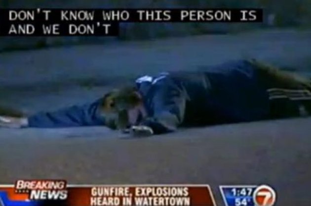 Телеканал NBC показал кадры его задержания - на них видно, как молодой человек лежит на асфальте лицом вниз, вытянув обе руки вперед. На вид ему около 20 лет. Задержанный, русоволосый стриженый парень, одет в спортивные штаны с белыми лампасами и ветровку с эмблемой на спине. Судя по всему, он оказал сопротивление полицейским, потому что ранее были слышны взрыв и последовавшие выстрелы.
