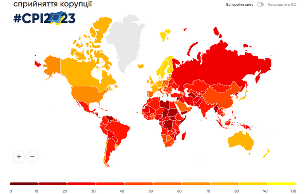 Напомним, что по итогам 2022 года Украина получила 33 балла из 100 возможных в Индексе восприятия коррупции и занимала 116 место из 180 стран в СРИ.