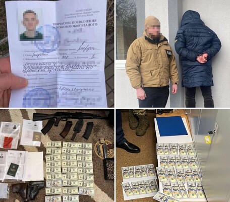 Во время обыска у него дома изъяли документы и военные билеты третьих лиц, выписки из медицинских карт, листы с печатями воинских частей, оружие без разрешительных документов и деньги в иностранной валюте.