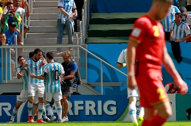Аргентинцы провели первый тайм в том же стиле, что и предыдущие матчи - владея инициативой, но без особого обострения. Впрочем, ситуация подкорректировал быстрый гол, в котором, можно сказать, "альбеселесте" повезло. Лионель Месси начал свой проход и отдал пас на Анхеля ди Мария, а тот переправил мяч дальше. На этом бы атака завершилась, если бы не рикошет от бельгийского футболиста, после чего Гонсало Игуаин мощно пробил мимо Тибо Куртуа.