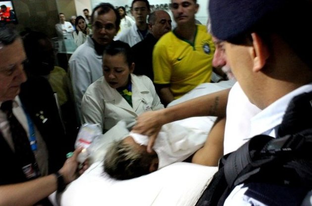 В поединке 1/4 финала с Колумбией, в котором бразильцы одержали победу 2:1, в столкновении с полузащитником колумбийцев Хуаном Суньигой нападающий получил удар коленом в спину и был вынужден покинуть поле с помощью врачей. Инцидент произошел на 87-й минуте при счете 2:1 в пользу Бразилии.