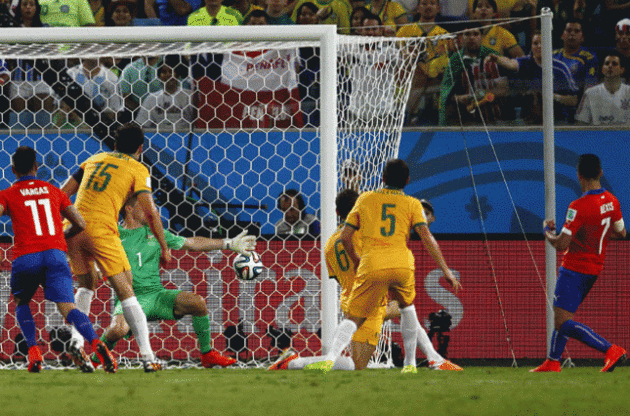В поединке на стадионе "Арена Пантанал" в Куябе южноамериканцы фактически сделали результат в первом тайме, когда в ворота соперника влетело два гола в течение двух минут - отличились Алексис Санчес (12-я минута) и Хорхе Вальдивия (14-я). Австралийцы попытались догнать оппонента, забив еще за 10 минут до перерыва (отличился Тим Кэйхилл), но на больше их не хватило. Победную же точку в поединке поставил Жан Босежур на второй добавленной арбитром минуте.