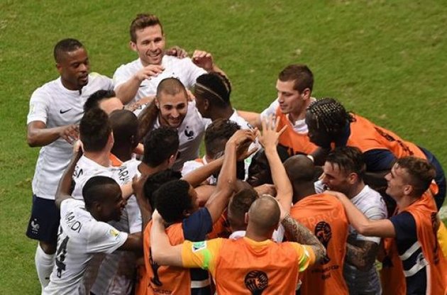 Результат команда Дидье Дешама, которая не пустила на ЧМ-2014 сборную Украины, оформила результат во втором поединке на турнире в самом начале игрового времени. На 17-й минуте Матье Вальбуэна отлично подал угловой и Оливье Жиру открыл счет. Вскоре Карим Бензема, забивший два гола в ворота Гондураса в первом туре, отоборал мяч у соперника в центре поля, отпасовал на Блеза Матуиди и тот поразил цель - 2:0.