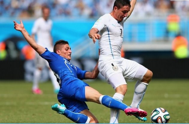 Победный мяч уругвайцы забили на 81-й минуте - его провел защитник Диего Годин после розыгрыша углового. Следует отметить, что на 60-й минуте удаление за грубый фол получил игрок итальянцев Клаудио Маркизио.