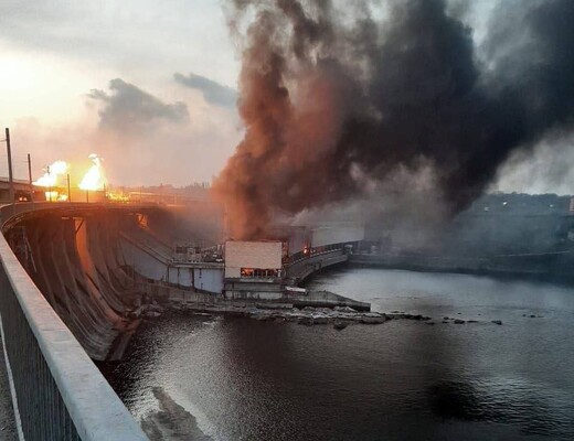 В Запорожье есть попадания по Днепровской ГЭС. На станции продолжается пожар, на месте работают чрезвычайные службы и энергетики. В Укргидроэнерго уверяют, что угрозы прорыва нет, и ситуация на станции контролируется. В то же время движение по автодорожному переезду плотины Днепровской ГЭС полностью ограничено.