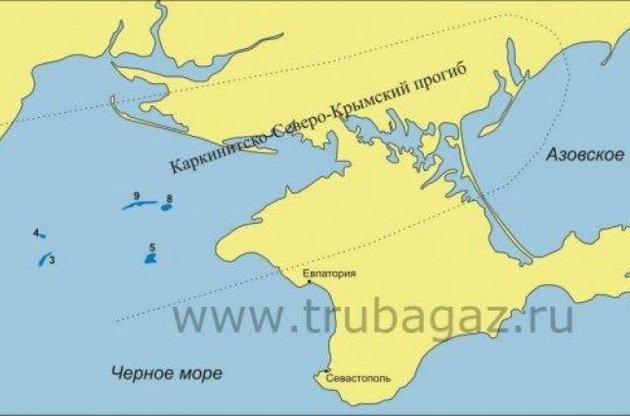 5 – Архангельское 8 – Южно-Голицынское; 9 – Голицынское (60-70 км. от крымского побережья)