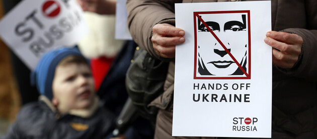 The action took place on Tuesday evening. About 50 people gathered with posters and State flags of Ukraine and chanted «Shame!» and «Glory to Ukraine!».