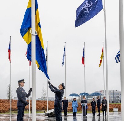 11 марта возле штаб-квартиры НАТО в Брюсселе состоялась торжественная церемония поднятия флага Швеции – 32 члена Альянса, официально присоединившегося на прошлой неделе – после завершения всех формальных процедур и завершения блокирования присоединения со стороны премьер-министра Венгрии Виктора Орбана.